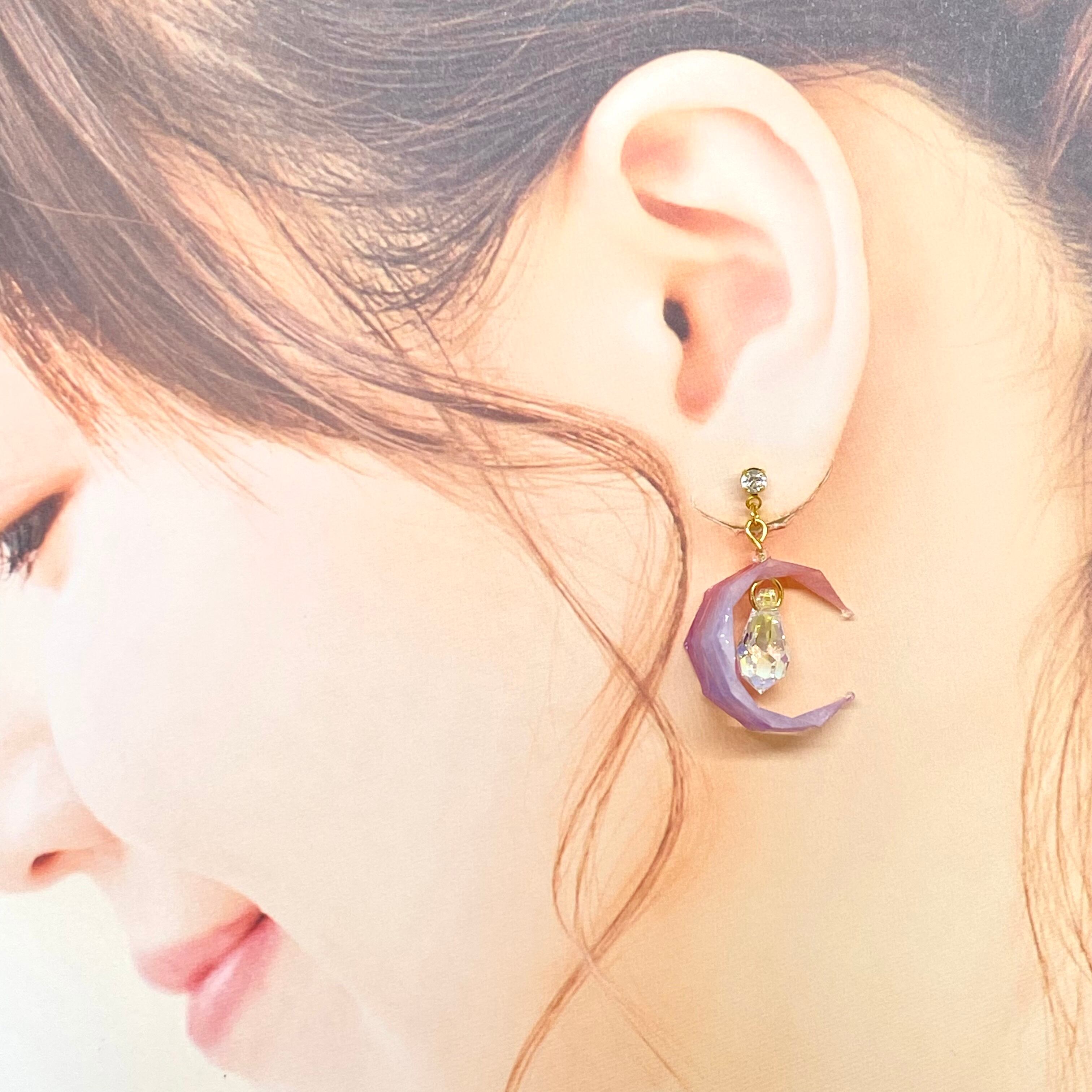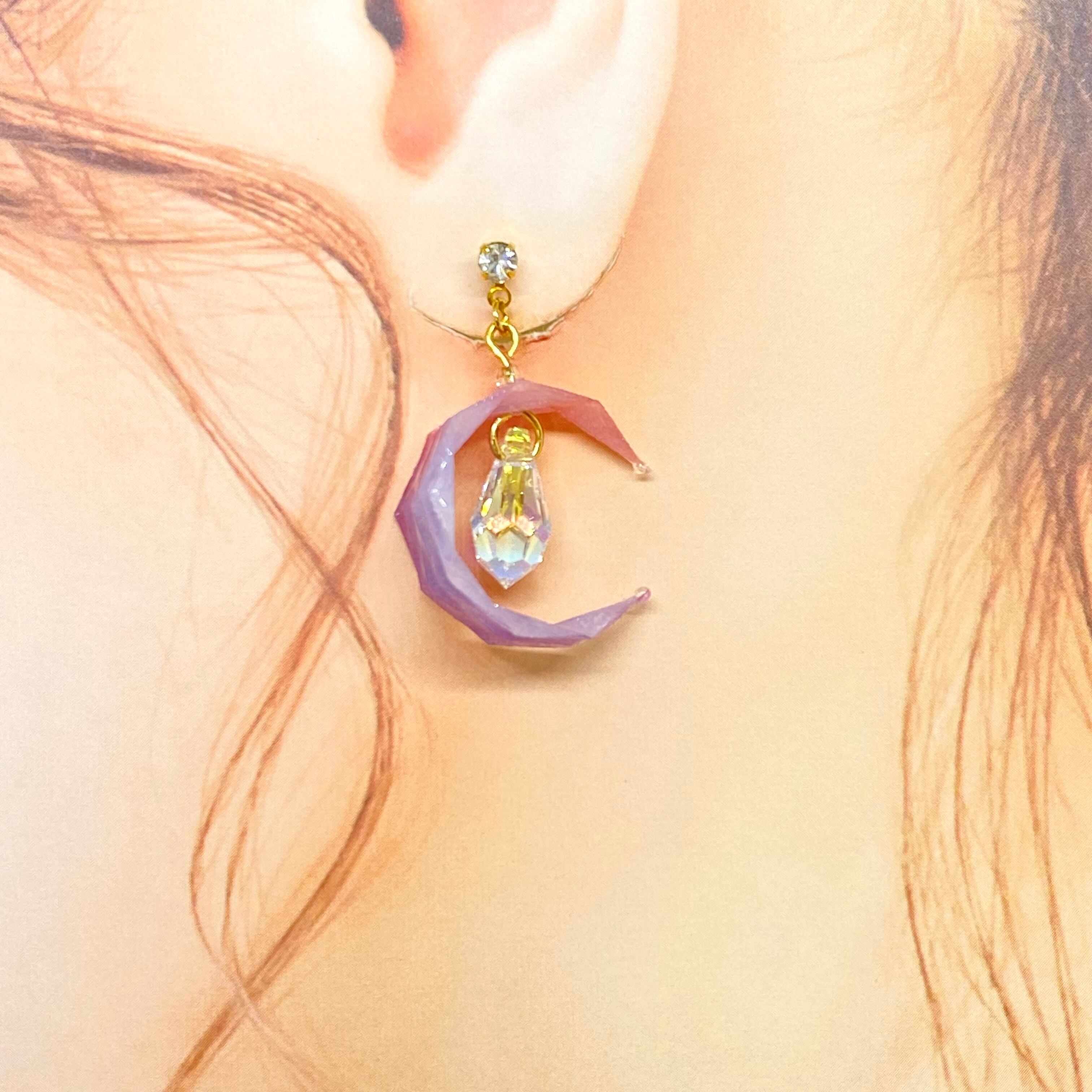 月の中には輝きのいいしずく型のストーンがついており、太陽光などでキレイに輝きます。